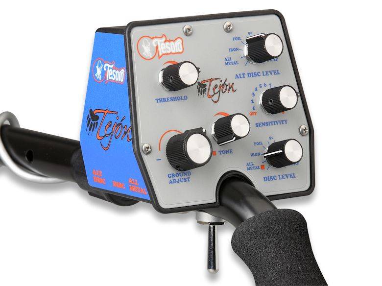 Der Tejon besitzt 2 unterschiedliche Diskriminations-Ebenen die individuell und getrennt voneinander mittels einem unter der Elektronik angebrachten federgelagertem Kippschalter aktiviert werden können. Der Nutzen der 2 Disk-Ebenen ist vielfältig, so kann z.B. im Wald bei schwacher Vermüllung mit null Disk im beeindruckend starkem Allmetal-Mode gesucht werden und nach Ortung eines Objektes in Sekundenbruchteilen der Diskriminator aktiviert werden.