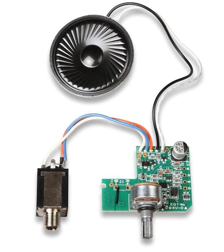 Fisher F75 battery compartment circuit board with potentiometer, loudspeaker and headphone socket.