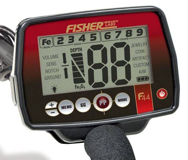 Fisher has also given the F44 an elegant, discreet red display illumination that can be switched to 5 brightness levels. This makes searching at night and at dusk a pleasure. If you want to search without headphones, you can adjust the volume of the loudspeaker. Finds are easy to recover thanks to the accurate pinpointing function with the associated depth display. The dynamic sound reproduction makes it easy to estimate the distance to the find from the very first detection.